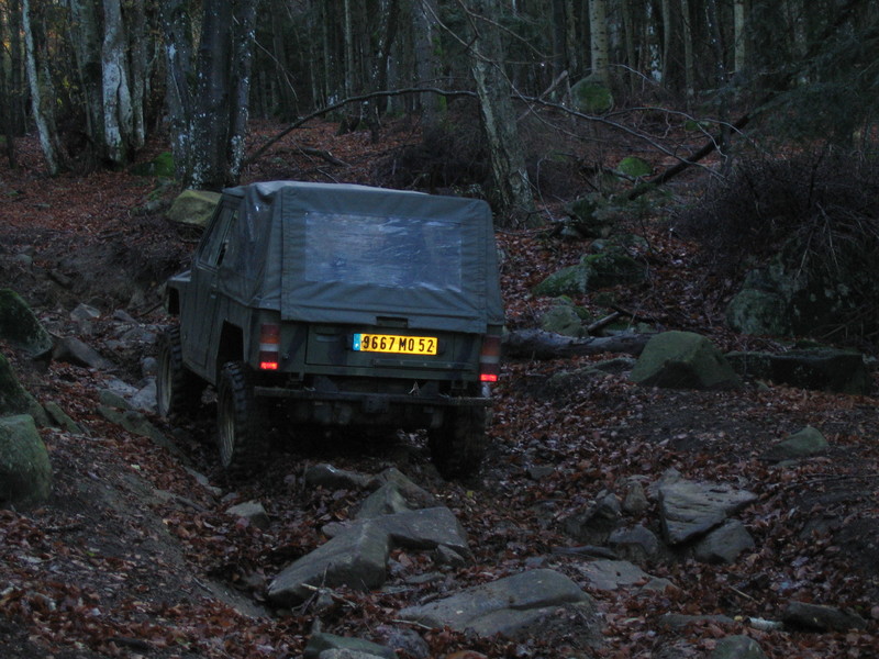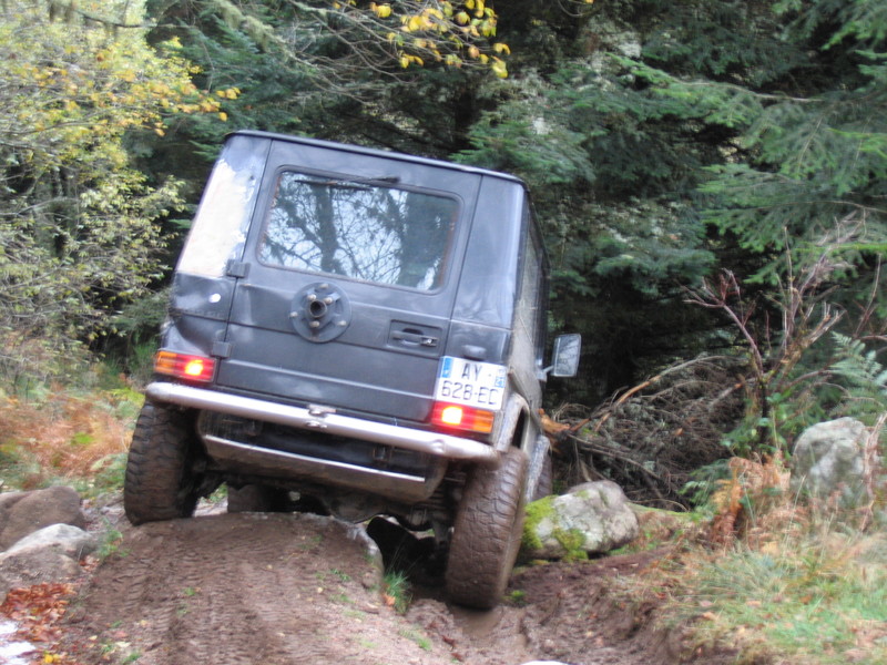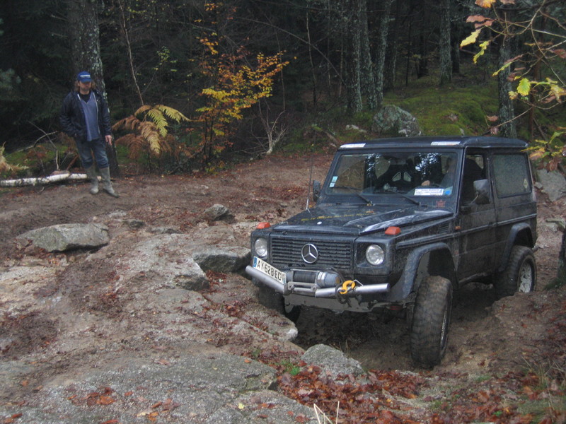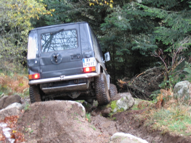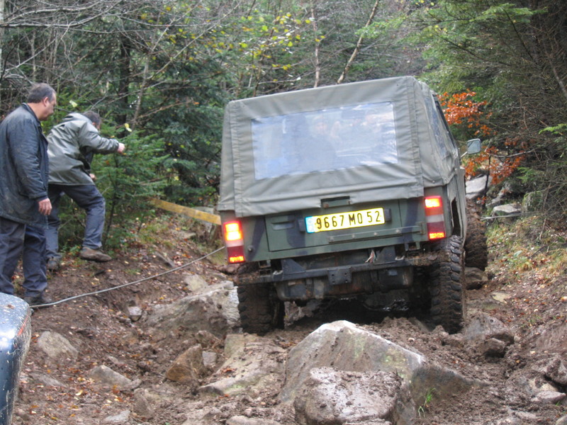 Après, 2 Auverlands bloquaient le passage, on a du contourner la dernière grimpette sympa par la gauche, pour aller placer le G "treuilleur" dans l'axe de tir, heu non, dans l'axe salvateur (l'arrière sanglé à un sapin et l'avant appuyé sur un talus).