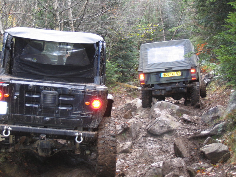 Peu de casse dans notre groupe : un tirant de pont, quelques lames et une commande d'embrayage, un radiateur d'huile ATF suivi de la boite auto (évidemment, au milieu d'une montée, dans le noir), plusieurs déjantages, deux barres de direction, un peu de tôle ...